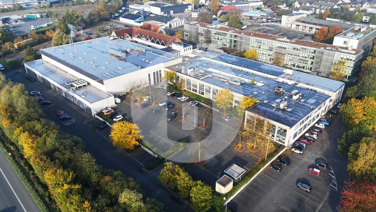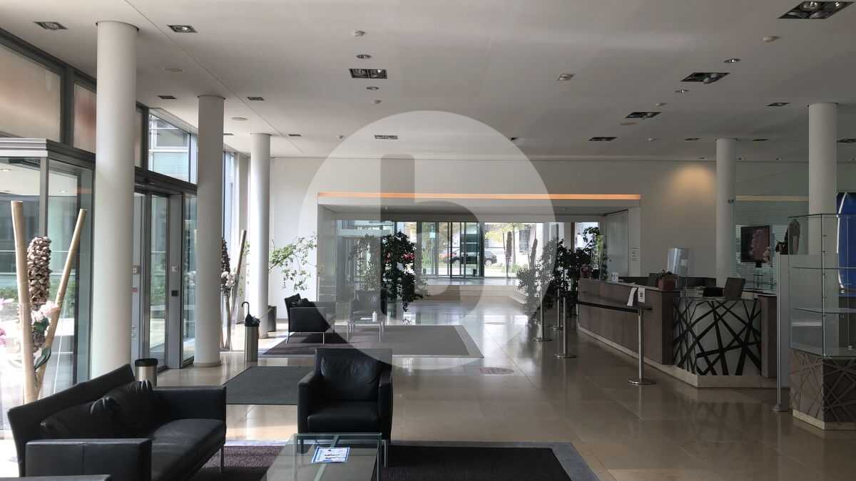 Der repräsentative Büro- und Lagerkomplex verfügt über einen eindrucksvollen Eingangsbereich mit zentral besetztem Empfang. Durch die helle Eingangshalle gelangt man mithilfe des Treppenhaus und den Personenaufzügen problemlos in alle Etagen des Gebäudes. Die Büroflächen sind mit einem Teppichboden, teils auch mit Laminat ausgestattet. Die Verkabelung verläuft über Bodentanks. Dem Mieter steht eine hauseigene Kantine zur Verfügung. Ferner können Parkplätze im Parkhaus angemietet werden. Die Büros sind voll klimatisiert. Ein Glasfaseranschluss liegt bereits im Gebäude und garantiert schnelles Internet.
